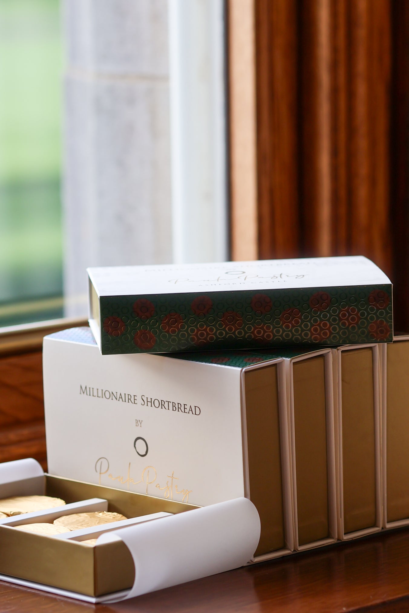 New for Christmas 2025, the Ashford ‘Legend’ Millionaire Shortbread by PaulaPastry features a box of 6 handcrafted shortbread biscuits with a rich caramel centre, enrobed in smooth Valrhona chocolate. Each biscuit is individually wrapped in gold foil and beautifully presented in a gift box, perfect for sharing or gifting.