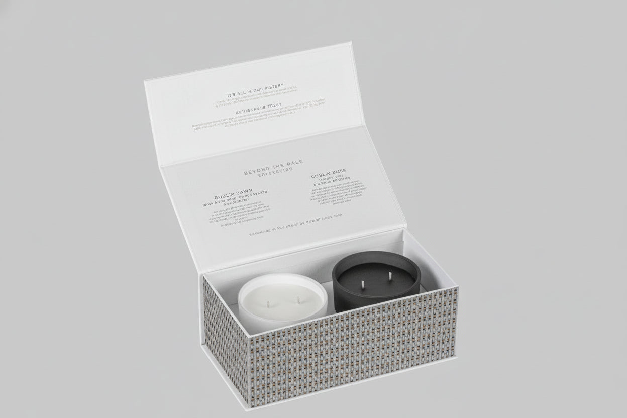 Indulge in the beauty of Ireland with the Dusk and Dawn Gift Set from Rathbornes. These two-wick candles offer a longer burn time, allowing you to savour their enchanting scents for an extended period.
